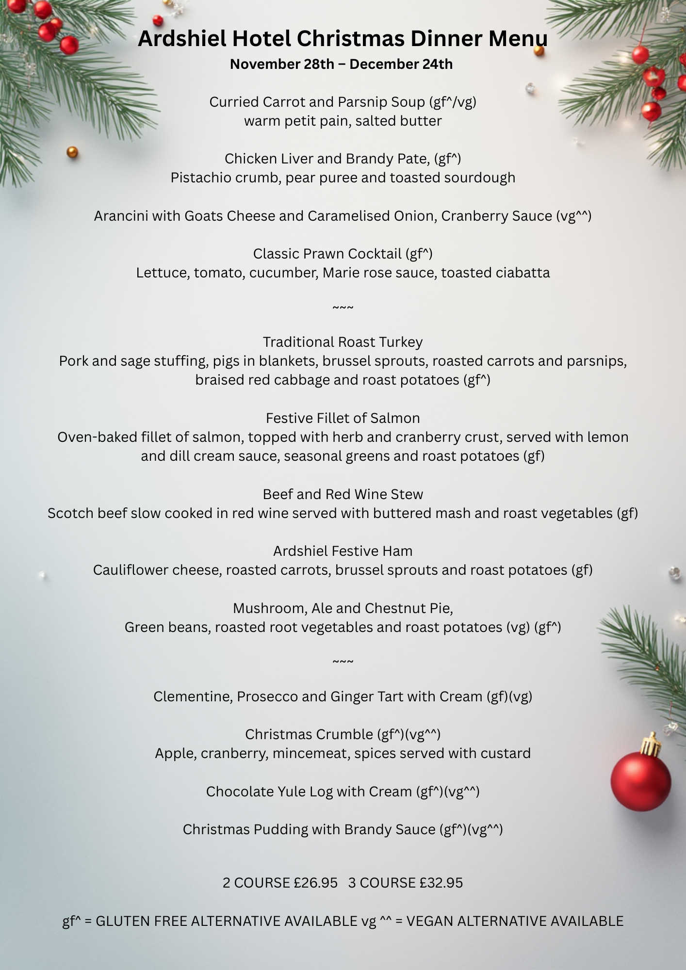 Our menus offer traditional Scottish favourites including Scottish Beef, Lamb, Game, Seafood and Vegetarian choices.